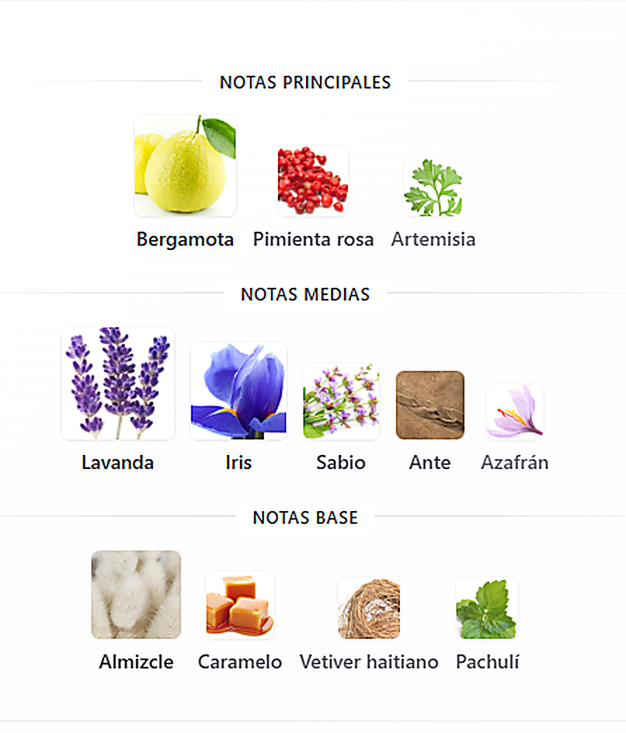 La apertura ofrece una frescura vibrante y luminosa con notas cítricas y aromáticas que aportan vitalidad inmediata. En el corazón, acordes herbales y especiados aportan carácter y profundidad. El fondo amaderado y ligeramente cálido crea una estela masculina, limpia y elegante, ideal para el día a día o para ocasiones donde se busca una presencia sofisticada pero natural.